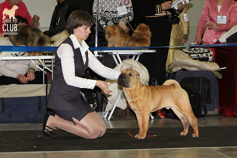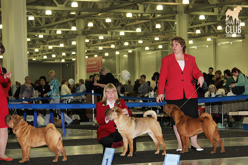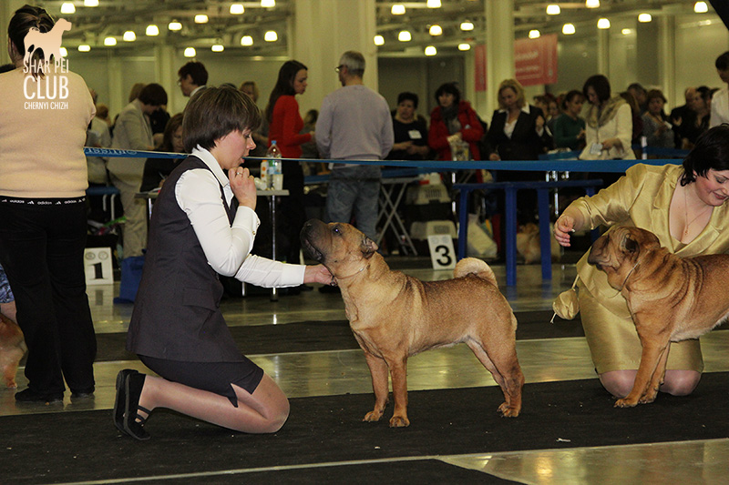 В первый день Евразии экспертизу проводил именитый судья, президент кинологического клуба Мексики Jose Luis Payro. Шарпеи у него открыты со времен признания стандарта АКС - с 1992 года, он очень востребован на выставках в США и стандарт для него не пустой звук )) . Предпочитал объемных собак, обращал большое внимание на движения, сразу дал понять свой предпочтительный тип и отсудил с этой точки зрения очень логично. Лучшим кобелем у него стал наш Черный Чиж Щеголь, а его отцу Джеку (Asias It's Five O'Clock Somewhere) был отдан R.CACIB ) ЛПП - Черный Чиж О Май Дарлинг ЛК - Черный Чиж Щеголь ЛЮ - Ирден Голд Шедевр ЛЩ - Айсти Илеал Фантастик Файр Результаты собак нашего питомника: Черный Чиж Эвита - лучшая сука щенок (владелец Леонова Марина), А-капелла Черный Чиж Би Онли Джой - 2е место в щенках суках (владелец Александр Сапрыгин), Черный Чиж Весомый Аргумент - второе место в кобелях юниорах (владелец Околелова Ольга), Черный Чиж Щеголь - победитель промежуточного класса, ЛУЧШИЙ КОБЕЛЬ, CACIB, ЧЕМПИОН ЕВРАЗИИ (владелец Черницына Марина), Черный Чиж У всех на Слуху - 2е место в промежуточном классе (владелец Смирнова Екатерина), Asias It's Five O'Clock Somewhere - победитель открытого класса, R.CACIB, Brekkukots MVP For Chernyi Chizh - 2 е место в открытом классе, Черный Чиж Чаттануга Чу Чу - лучшая сука юниор, Черный Чиж Греат Экспетейшнс - 2-е место в суках юниорах (владельцы семья Кузаевых), Vajes All About Eva For Chernyi Chizh - 3е место в промежуточном классе Черный Чиж Я и Моя Тень - 3я в открытом классе, Черный Чиж Русская Рулетка - 2я в открытом классе (владелец Черницына Марина), Черный Чиж О Май Дарлинг- 1-е в классе Чемпионов, ЛУЧШАЯ СУКА, CACIB, ЛУЧШИЙ ПРЕДСТАВИТЕЛЬ ПОРОДЫ ШАРПЕЙ!!