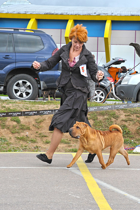 Ли собрала в своей родословной лучшие крови, взяв от каждого из предков только лучшие качества: идеальный фронт от дедушки Хагена, красивую женственную голову от мамы Дезире, длинную шею от папы Вайлдфаера, искрометный показушный темперамент от бабушки Нирваны. К получению собаки такого качества мы шли не один год и в ней воплотились наши представления о шарпее близком к идеалу породы. И Ли оправдывает возложенные на нее ожидания, несмотря на ее юный возраст она уже выиграла БЕСТ ИН ШОУ (до нее в Москве это сделал только один шарпей - Чемпионка мира 2000 г. Этуаль Нуар Маленькая Вера, крови которой, кстати, есть и в Ли), БЕСТ ЮНИОРОВ и 2й группы. На "России 2011" она стала лучшей сукой юниором, а дебютировав впервые во взрослом классе на Евразии 2012, выиграла ее! Обойдя при этом многократного чемпиона Мира и Европы, приехавшего на эту выставку из Голландии Jade East Catch Me If You Can. Знай наших!