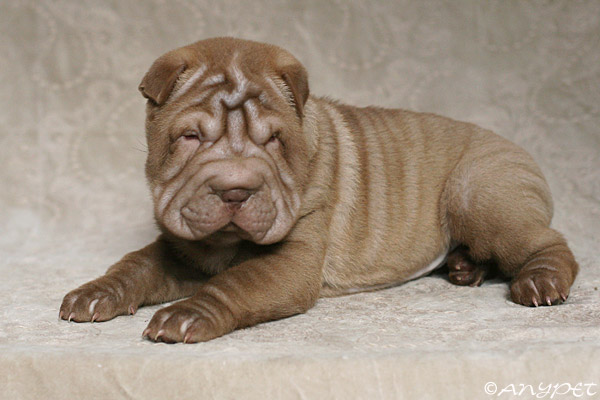 Твигги, подающая большие надежды внучка Хагена и Уганды, живет во французском питомнике шарпеев Legendes De Indienes и радует своих владельцев неутомимым веселым темпераментом и, конечно же, своей красотой.