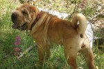 | Владелица шарпея Дуси о своей любимице: "Увидев фотографию Хагена, сравнили его с Дусей-они очень похожи. Дусенька любит кататься на машине, бегать за воронами и кошками, а так же мыться в ванной, а вот купаться в озере ее не заставишь.