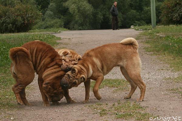 Шарпеи на прогулке в паркеоставить комментарий