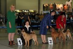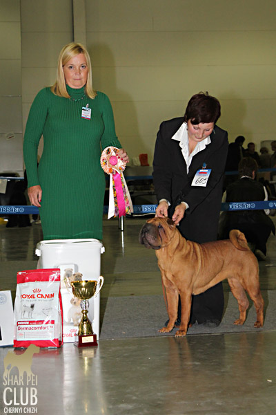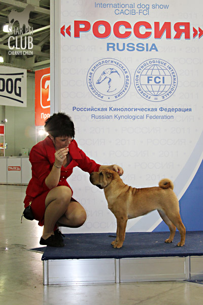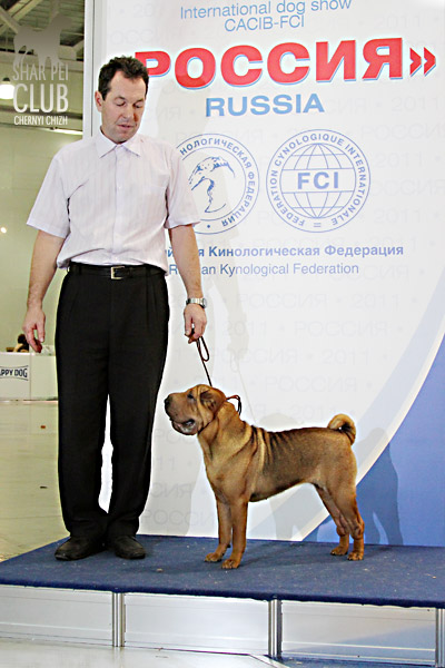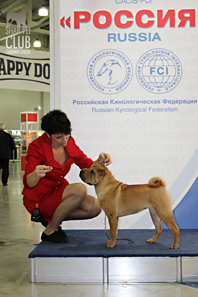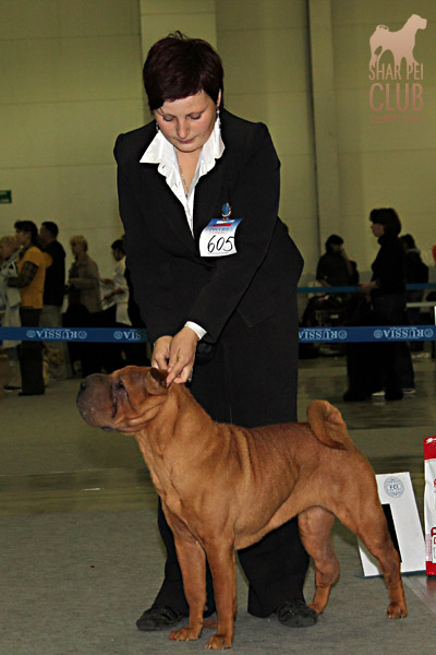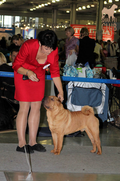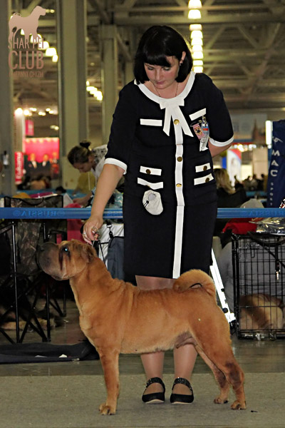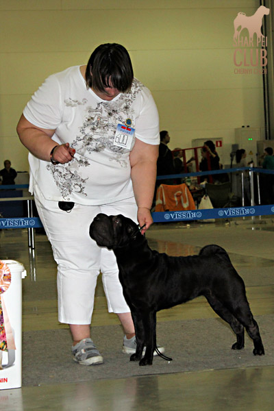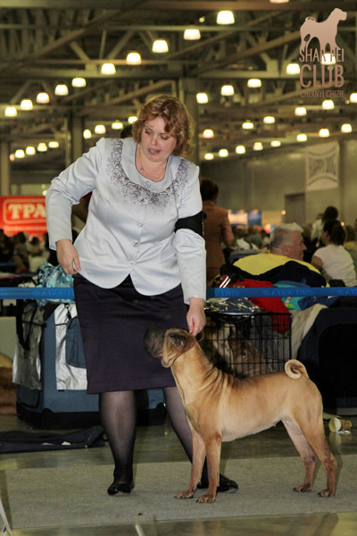 Вот и закончилась еще одна "Россия" . В этом году на выставке присутствовало рекордно низкое количество участников -всего 42 собаки. Экспертиза на выставке была молниеносной, судья Ratibor Cekic собак не ощупывал, движения вперед назад не смотрел, только профильные. В обсуждении результатов после выставки он поделился, что для него приоритетное значение имеют отличный хендлинг (он сам в прошлом хендлер), темперамент (он не прощал робкость), а в движении отличный вымах передних конечностей и хороший толчок задних. В целом он отсудил очень логично, хотя если бы он уделил рингу шарпеев чуть больше времени и судил бы более внимательно, то, возможно, результаты были бы немного другие. Наши собаки показали неплохие результаты: Черный Чиж Полоса Везения -Лучший щенок выставки Черный Чиж Пэйнт Ми Пруд -Лучший кобель щенок Черный Чиж О Май Дарлинг- Лучшая сука Юниор Черный Чиж Он Виш - 2-я в классе сук юниоров Черный Чиж Я и Моя Тень-3-я в классе сук юниоров Черный Чиж Мерседес - 2-я в классе сук чемпионок Brekkukots MVP for Chernyi Chizh - 3-й в классе юниоров Asias It`s Five O`Clock Somewhere - 1-й в открытом классе кобелей, R.CACIB Черный Чиж Максимум - 1-е в классе Чемпионов, CACIB (эх! месяца не хватает до интера Полные результаты выставки вешать не буду, так как фотоотчет у нас неполный "Золотой шарпей" судила малоизвестный эксперт Агафонова (Триполи). Ринг шарпеев был у нее последним и, судья устала, была слегка раздражена и регулярно срывалась на экспонентов, выдав в итоге участникам одного из классов, что "экспертиза не вызывает у нее ни малейшего удовольствия". Другие перлы цитировать не буду, но их тоже было достаточно. Обращала внимание на темперамент и профильные движения. Не досудив ринг (оставался еще конкурс "ребенок и собака"), схватив свои вещи, она пулей помчалась прочь, оставив за своей спиной недоумевающих участников выставки. Так что ее впечатления (или отсутствие оных) осталось тайной покрытой мраком. Хотя, уверена, что найдутся участники, которые будут рассказывать о ее дифирамбах в свой адрес Результаты наших собак: Черный Чиж Пэйнт Ми Пруд - лучший щенок выставки Черный Чиж Полоса Везения - лучшая сука щенок Черный Чиж Я И Моя Тень - Лучшая сука Юниор, Юный Чемпион Клуба Черный Чиж Он Виш - 3-е в классе сук юниоров Черный Чиж Мерседес - 1-е в классе сук Чемпионок, КЧК Brekkukots MVP for Chernyi Chizh - 3-е в классе юниоров, CC Asias It`s Five O` Clock Somewhere -1-е в открытом классе, КЧК Daoshao Absolute Reality Chernyi Chizh - 1-е в классе Чемпионов, Лучший Кобель, Чемпион Клуба
