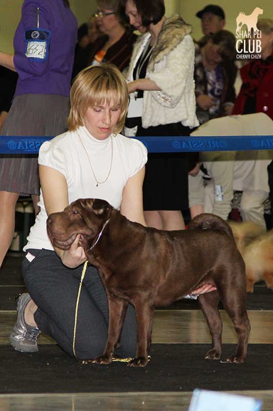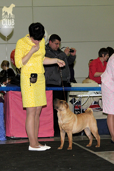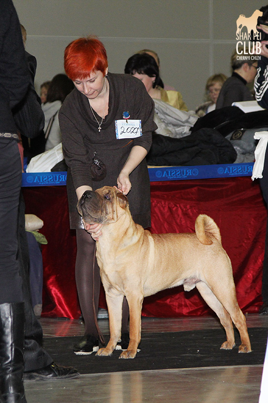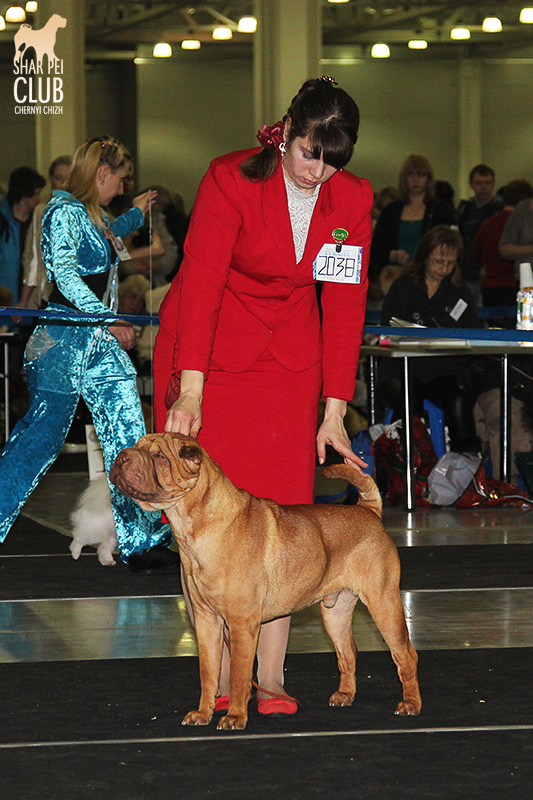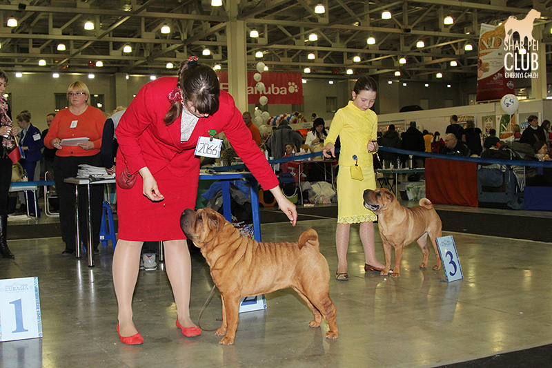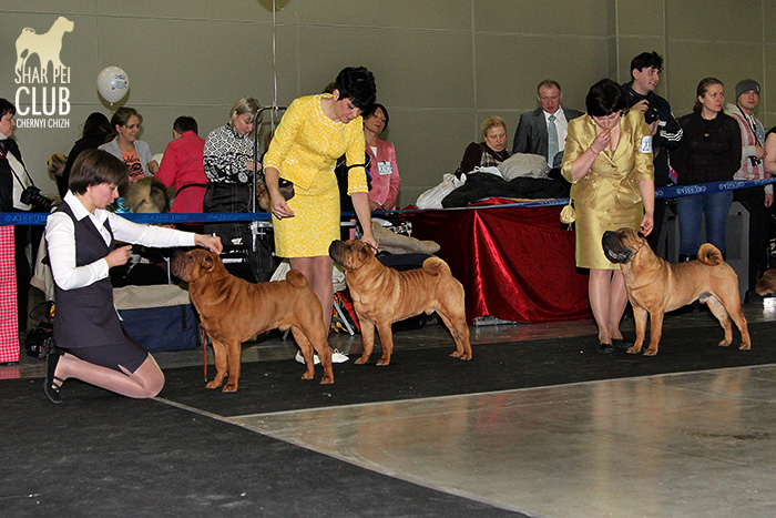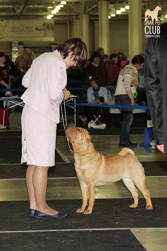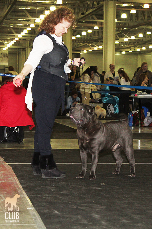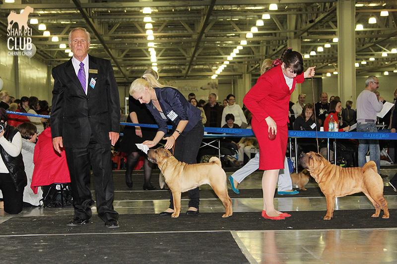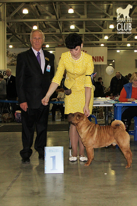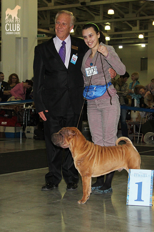 В первый день Евразии экспертизу проводил именитый судья, президент кинологического клуба Мексики Jose Luis Payro. Шарпеи у него открыты со времен признания стандарта АКС - с 1992 года, он очень востребован на выставках в США и стандарт для него не пустой звук )) . Предпочитал объемных собак, обращал большое внимание на движения, сразу дал понять свой предпочтительный тип и отсудил с этой точки зрения очень логично. Лучшим кобелем у него стал наш Черный Чиж Щеголь, а его отцу Джеку (Asias It's Five O'Clock Somewhere) был отдан R.CACIB ) ЛПП - Черный Чиж О Май Дарлинг ЛК - Черный Чиж Щеголь ЛЮ - Ирден Голд Шедевр ЛЩ - Айсти Илеал Фантастик Файр Результаты собак нашего питомника: Черный Чиж Эвита - лучшая сука щенок (владелец Леонова Марина), А-капелла Черный Чиж Би Онли Джой - 2е место в щенках суках (владелец Александр Сапрыгин), Черный Чиж Весомый Аргумент - второе место в кобелях юниорах (владелец Околелова Ольга), Черный Чиж Щеголь - победитель промежуточного класса, ЛУЧШИЙ КОБЕЛЬ, CACIB, ЧЕМПИОН ЕВРАЗИИ (владелец Черницына Марина), Черный Чиж У всех на Слуху - 2е место в промежуточном классе (владелец Смирнова Екатерина), Asias It's Five O'Clock Somewhere - победитель открытого класса, R.CACIB, Brekkukots MVP For Chernyi Chizh - 2 е место в открытом классе, Черный Чиж Чаттануга Чу Чу - лучшая сука юниор, Черный Чиж Греат Экспетейшнс - 2-е место в суках юниорах (владельцы семья Кузаевых), Vajes All About Eva For Chernyi Chizh - 3е место в промежуточном классе Черный Чиж Я и Моя Тень - 3я в открытом классе, Черный Чиж Русская Рулетка - 2я в открытом классе (владелец Черницына Марина), Черный Чиж О Май Дарлинг- 1-е в классе Чемпионов, ЛУЧШАЯ СУКА, CACIB, ЛУЧШИЙ ПРЕДСТАВИТЕЛЬ ПОРОДЫ ШАРПЕЙ!!