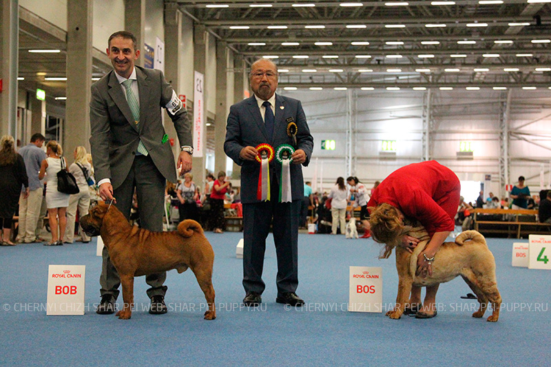 Основные результаты выставки: судья Judge Kamisato Hiroshi Кобели юниоры 1-е Jade East Another Suitcase In Another Hall 2-е Ingrem Rey Make A Splash For Walnut Pie 3-е Pei Attention Bow-Tie 4-е Secret Line's Puff The Magicdragon Кобели промежуточного класса: 1-е Chernyi-Chizh Mister Twister 2-е Pei Attention Apple Pie Crust Кобели открытого класса 1-е CACIB, BOB El Yoc G'evident Giorgio 2-е Ingrem Rey Keep In Touch 3-е Barhund's Michelangelo 4-е Buntovschik Кобели класса чемпионов 1-е R.CACIB Deakie Lawful Rebellion 2-е Secret Line's Music Maker 3-е Jade East First We Take Manhattan 4-е Aisti Ileal Angel In The Flesh Кобели ветераны Secret Line's Deng Xiao Ping Суки юниоры 1-е Jade East Catch Forty Winks 2-е Secret Line's Huff'n'puff 3-е Monopoliya Iz Doma Bss 4-е Nimfa Rascvet Krasoti Iz Kotmarian Промежуточный класс сук 1-е R.CAC R.CACIB Nezhnost Iz Uralskoi Legendy 2-е Golden Orpheus Coffee With No Cream 3-е Pei Attention Satsumas Star 4-е Skladshatoe Shudo Skazochnaya Koroleva Открытый класс сук 1-е Shine's The Big Dipper 2-е Aisii Ileal Rusanna 3-е Pei Attention Vanilla Cupcake 4-е Ingrem Rey Kiss Of Destiny Класс сук чемпионок 1-е CACIB Pei Attention Next Top Model 2-е Aisti Ileal Wonderful Shining Star 3-е Ingrem Rey Repeat After Me 4-е Golden Orpheus Heart On A Leash Класс сук ветеранок 1-е и ЛВ Ingrem Rey Victoria Valentina Огромная благодарность профессиональному фотографу Светлане Валуевой за прекрасный фоторепортаж, сделанный специально для нашего сайта.