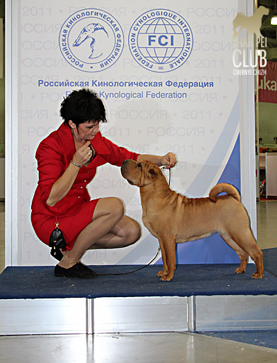 Ли собрала в своей родословной лучшие крови, взяв от каждого из предков только лучшие качества: идеальный фронт от дедушки Хагена, красивую женственную голову от мамы Дезире, длинную шею от папы Вайлдфаера, искрометный показушный темперамент от бабушки Нирваны. К получению собаки такого качества мы шли не один год и в ней воплотились наши представления о шарпее близком к идеалу породы. И Ли оправдывает возложенные на нее ожидания, несмотря на ее юный возраст она уже выиграла БЕСТ ИН ШОУ (до нее в Москве это сделал только один шарпей - Чемпионка мира 2000 г. Этуаль Нуар Маленькая Вера, крови которой, кстати, есть и в Ли), БЕСТ ЮНИОРОВ и 2й группы. На "России 2011" она стала лучшей сукой юниором, а дебютировав впервые во взрослом классе на Евразии 2012, выиграла ее! Обойдя при этом многократного чемпиона Мира и Европы, приехавшего на эту выставку из Голландии Jade East Catch Me If You Can. Знай наших!