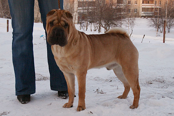 | Гарик это наш первый привезенный из США племенной кобель. До сих пор помню как мы его добивались-писали, а заводчик не отвечал на письма, мы завалили ее сообщениями на автоответчик. Американские заводчики неохотно продают хороших щенков за границу. Для них перспективный щенок это победы на выставках, это реклама. АКС не признает чемпионства других стран, при обмене родословной ФЦИ на американскую родословную все титулы предков убираются . Вода камень точит и Нэнси, владелец питомника Success не выдержала и уступила. Гарик летел к нам три дня, с двумя пересадками. Прилетел худющий, испуганный, севший на пястях. Мы его вытащили из бокса- поставили на стол в стойку- он в ней застыл и стоял сам минут 10. Вспоминаю, как он рос, а мы все любовались на его грудь килем- такой у российских шарпеев не было ни у кого. У Гарика замечательная родословная, основанная на знаменитых шарпеях Америки 90х годов, в 4х коленах 17 Чемпионов Америки. Этот мальчик продукт инбридинга 3 на 4 на знаменитого производителя Америки CH Meiting Luv Wun Macmurfee (4 года подряд лучший производитель породы шарпей на Национальной выставке Американского клуба породы). Инбридинг на Макмарфи до сих пор считается очень удачной комбинацией в разведении. Гарик показал себя препотентным кобелем, и многие его дети сделали выдающуюся шоу карьеру. Сейчас в его «активе» 25 Чемпионов разных стран. Особого упоминания заслуживает его характер - он очень уравновешен и лоялен и к посторонним людям и собакам. Большинство его детей это спокойные, уверенные в себе шарпеи, которым даже внутривенный укол не страшен- будут стоят не шелохнувшись. Трудно передать в нескольких строках, то как мы гордимся и любим Гарика, он выдающийся пес! |