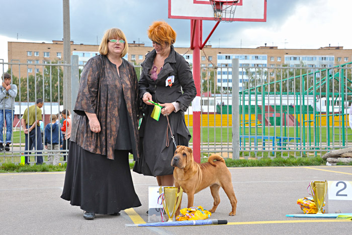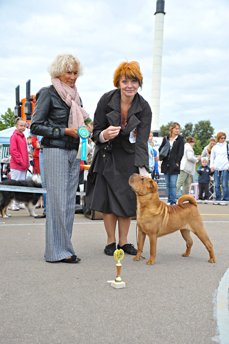 Ли собрала в своей родословной лучшие крови, взяв от каждого из предков только лучшие качества: идеальный фронт от дедушки Хагена, красивую женственную голову от мамы Дезире, длинную шею от папы Вайлдфаера, искрометный показушный темперамент от бабушки Нирваны. К получению собаки такого качества мы шли не один год и в ней воплотились наши представления о шарпее близком к идеалу породы. И Ли оправдывает возложенные на нее ожидания, несмотря на ее юный возраст она уже выиграла БЕСТ ИН ШОУ (до нее в Москве это сделал только один шарпей - Чемпионка мира 2000 г. Этуаль Нуар Маленькая Вера, крови которой, кстати, есть и в Ли), БЕСТ ЮНИОРОВ и 2й группы. На "России 2011" она стала лучшей сукой юниором, а дебютировав впервые во взрослом классе на Евразии 2012, выиграла ее! Обойдя при этом многократного чемпиона Мира и Европы, приехавшего на эту выставку из Голландии Jade East Catch Me If You Can. Знай наших!