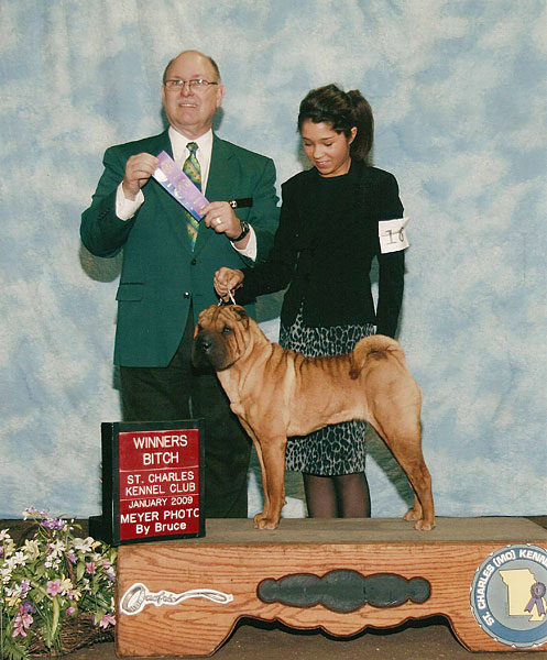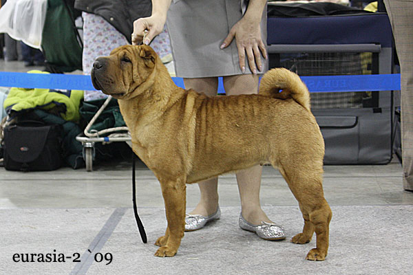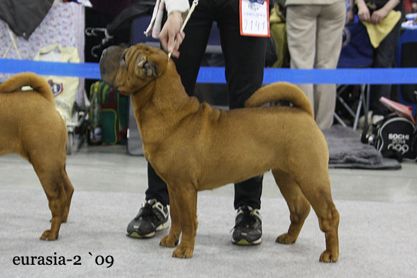 | Гарик это наш первый привезенный из США племенной кобель. До сих пор помню как мы его добивались-писали, а заводчик не отвечал на письма, мы завалили ее сообщениями на автоответчик. Американские заводчики неохотно продают хороших щенков за границу. Для них перспективный щенок это победы на выставках, это реклама. АКС не признает чемпионства других стран, при обмене родословной ФЦИ на американскую родословную все титулы предков убираются . Вода камень точит и Нэнси, владелец питомника Success не выдержала и уступила. Гарик летел к нам три дня, с двумя пересадками. Прилетел худющий, испуганный, севший на пястях. Мы его вытащили из бокса- поставили на стол в стойку- он в ней застыл и стоял сам минут 10. Вспоминаю, как он рос, а мы все любовались на его грудь килем- такой у российских шарпеев не было ни у кого. У Гарика замечательная родословная, основанная на знаменитых шарпеях Америки 90х годов, в 4х коленах 17 Чемпионов Америки. Этот мальчик продукт инбридинга 3 на 4 на знаменитого производителя Америки CH Meiting Luv Wun Macmurfee (4 года подряд лучший производитель породы шарпей на Национальной выставке Американского клуба породы). Инбридинг на Макмарфи до сих пор считается очень удачной комбинацией в разведении. Гарик показал себя препотентным кобелем, и многие его дети сделали выдающуюся шоу карьеру. Сейчас в его «активе» 25 Чемпионов разных стран. Особого упоминания заслуживает его характер - он очень уравновешен и лоялен и к посторонним людям и собакам. Большинство его детей это спокойные, уверенные в себе шарпеи, которым даже внутривенный укол не страшен- будут стоят не шелохнувшись. Трудно передать в нескольких строках, то как мы гордимся и любим Гарика, он выдающийся пес! |